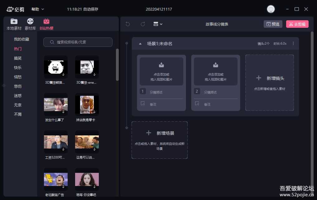 添加了素材集市功能,包括“一键三连”、“B站热梗”宝藏音乐、海量贴纸、专业转场、神仙特效