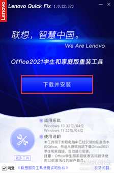重启后需要再次运行本工具,工具的可操作按钮为“下载并安装”
