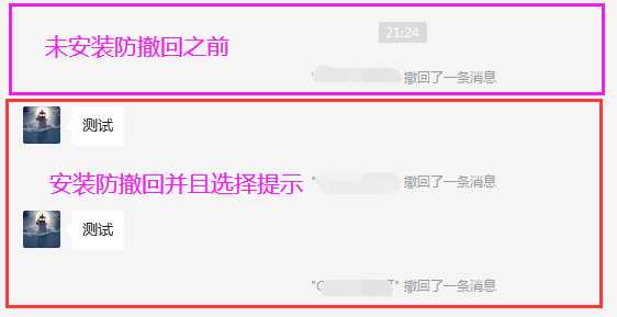 注意: 和 防撤回并提示 两个选项二选一即可~