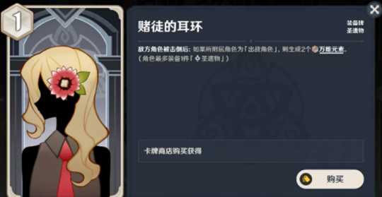 最后是2张圣遗物卡“赌徒的耳环、教官的帽子”,个人实用感觉非常好用,很多UP主也有推荐,我强烈建议大家入手一下。
