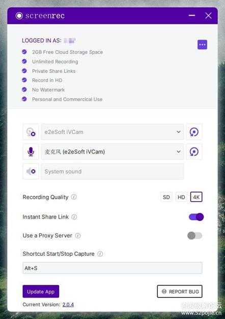 ScreenRec 是一款免费的屏幕录像机,没有水印,可让您一键捕获桌面并立即共享。没登录前只能录制普通清晰度的视频,登录后最高可录制4K高清视频,云端同步,使用起来还是很方便的,已经亲测,缺点是不能设置中文,不过不影响,直接录制桌面操作的话,还是很不错的选择