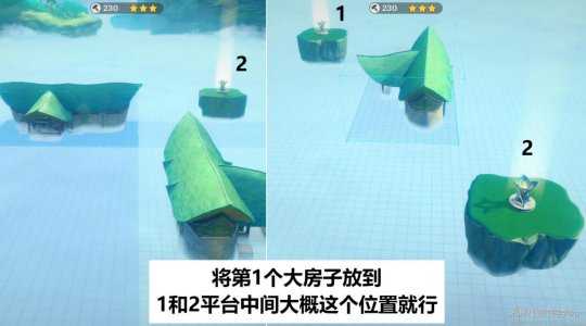 4.将第1个大房子放到,1和2平台中间大概这个位置就行。
