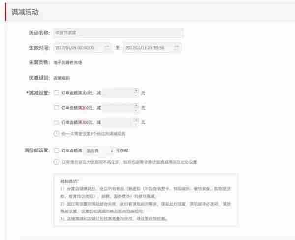 2)当卖家年货节报名被审核通过后到活动预热前,可编辑但不能删除店铺满减。