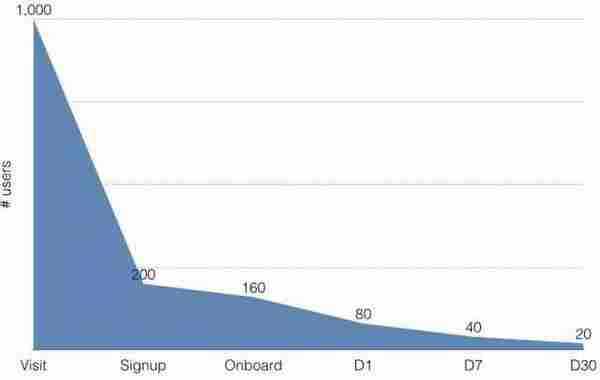 这条曲线非常典型,为什么产品数据会如此难看,这和运营有紧密的关系。而且我相信这还不是最糟糕的数据曲线。先前我见过一个做宠物社区的公司在地推,路过的用户每下载app就送一瓶饮料或者一盒纸巾。其实这样获取的用户是完全没有价值的,纯粹是为了一盒纸巾或一瓶饮料而来,所以,可想而知,你的用户留存率会有多低。