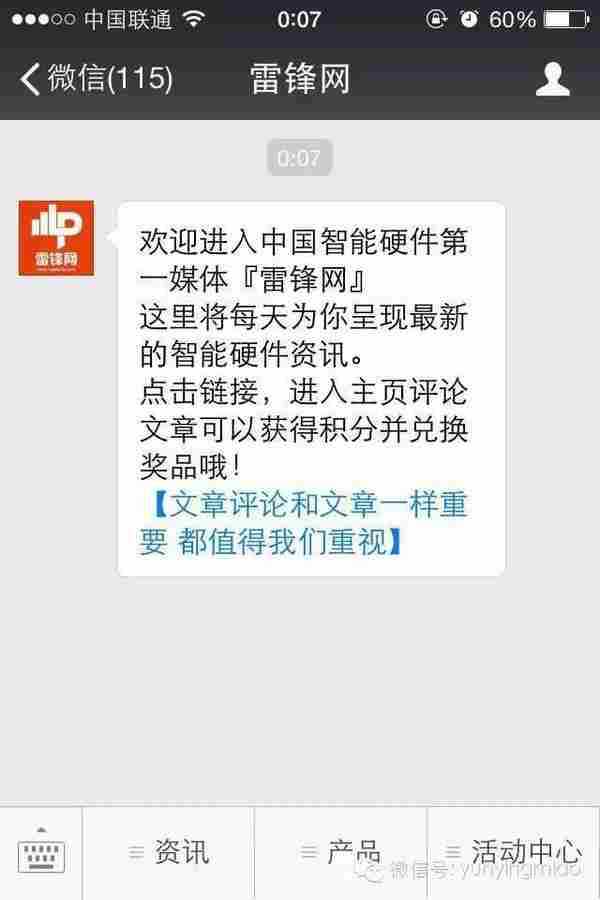 猜猜点击自动回复之中的“文章评论和文章一样重要 都值得我们重视”会出现什么内容?其实是说的雷锋网积分的事情,目的就是鼓励用户评论,一是因为评论可以直接分享到微博,给网站带来流量,二是希望打造成科技媒体之中的网易,把评论变成一种社区文化。