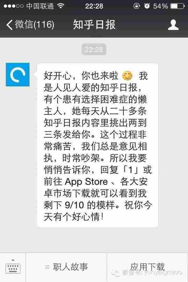 由于知乎的回复太简单,我们来看知乎日报的,知乎日报的自动回复可以总结为3点: